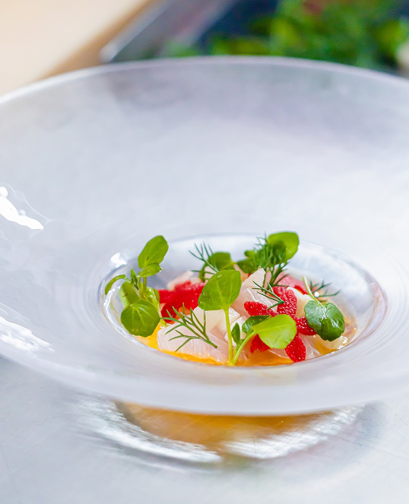 Hamachi crudo and a Sea Buckthorn Vinaigrette