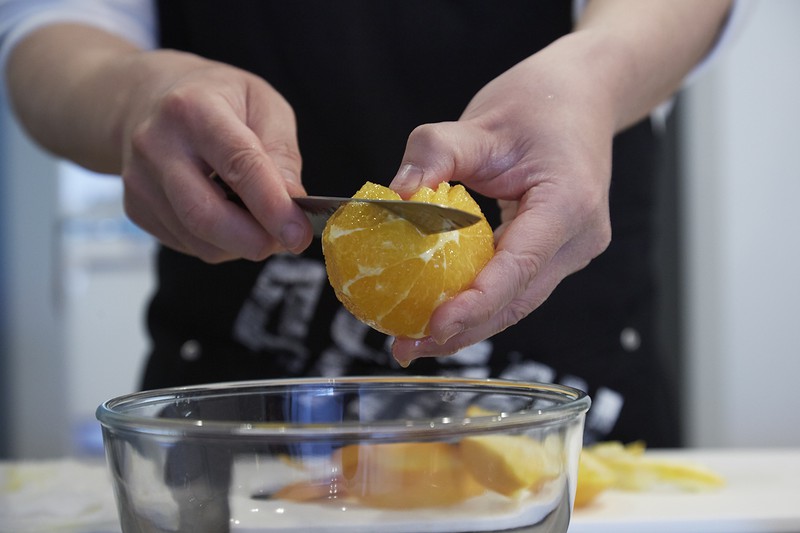 トッピングするオレンジを先に作っておきます。