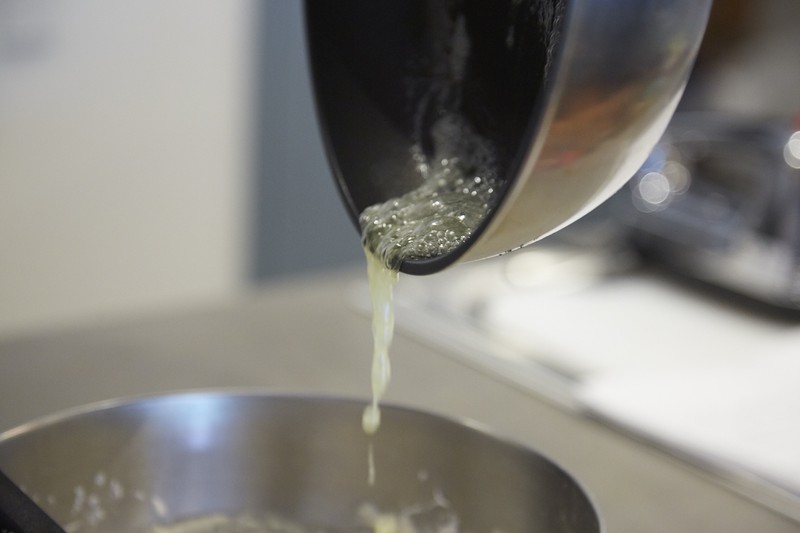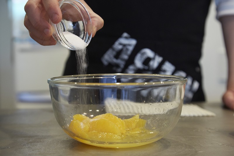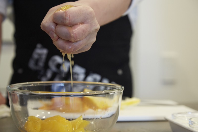 果汁をたっぷり絞って、フレッシュなオレンジソースの出来上がり。