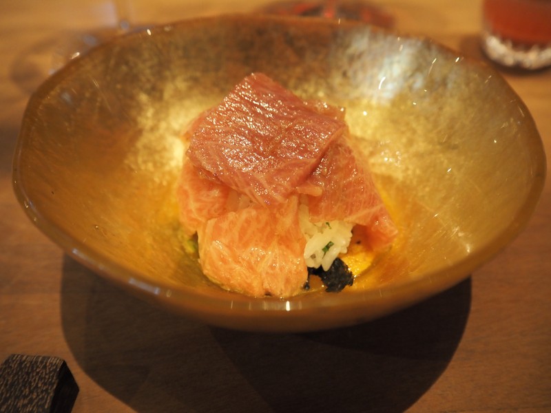 ▲ 途中でお鮨が出るのもNIKKEIならでは。ちなみにこの日の鮪はスペイン産。