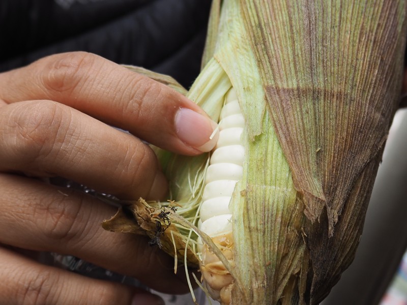 ▲ 粒が大きく、白いトウモロコシ「チョクロ」。噛むとモチモチしており、セビーチェの付け合わせにもよく使われる。