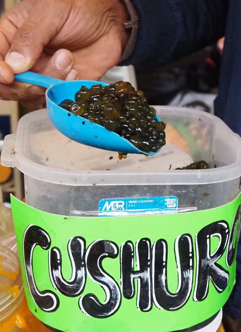 ▲ 標高3000~4000mの高地にある沼で自生する藻「クシュロ」。スープや煮込み料理に使うそうですが、肉よりタンパク質の含有量が多いとか。食べてみたい!