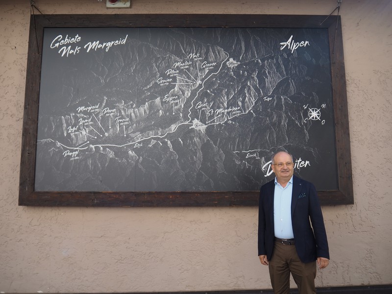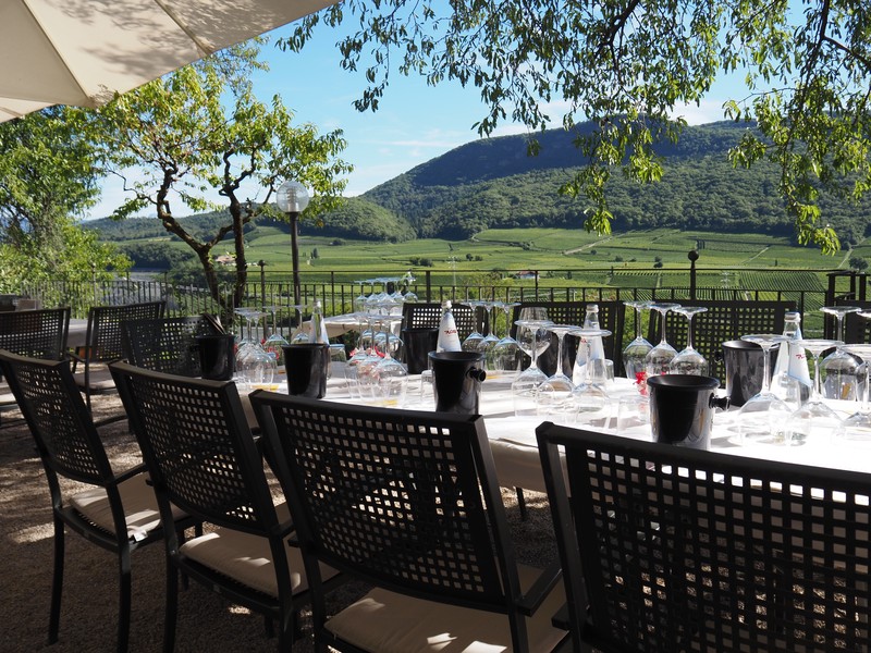 お次は「St. Michael-Eppan(サン・ミケーレ・アッピアーノ)」のステファン・ヴェルヒャーさんとランチ。こちらもアルト・アディジェを代表する協同組合ワイナリーのひとつで、1907年にアッピアーノ村(Eppan)で設立されました。なぜ、Eppanなのにアッピアーノなのかって? そこは、【前編】でご説明しているようにアルト・アディジェが第一次世界大戦まではドイツ語圏だった歴史を持ち、現在も2言語の地域だから。このEppanという村については、日本ではアッピアーノという方が通りが良いのでそちらが採用されているようです。