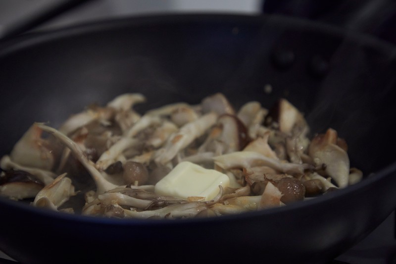 バター 米に20g、きのこに10g