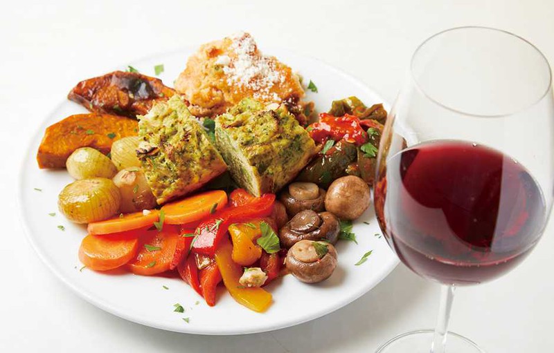8~9種のタパスを豪快に盛り付けた前菜盛り合わせ1600円(大皿)。濃いめの味付けゆえ赤のチョイスが正解。
