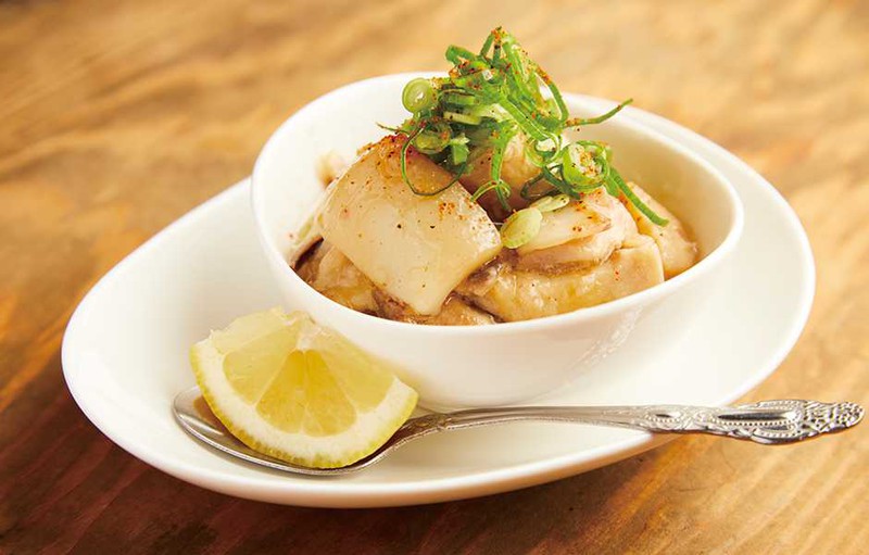 レアでサーブされるハリイカは、プリプリとした食感がたまりません。ハリイカとキノコのアヒージョ580円。