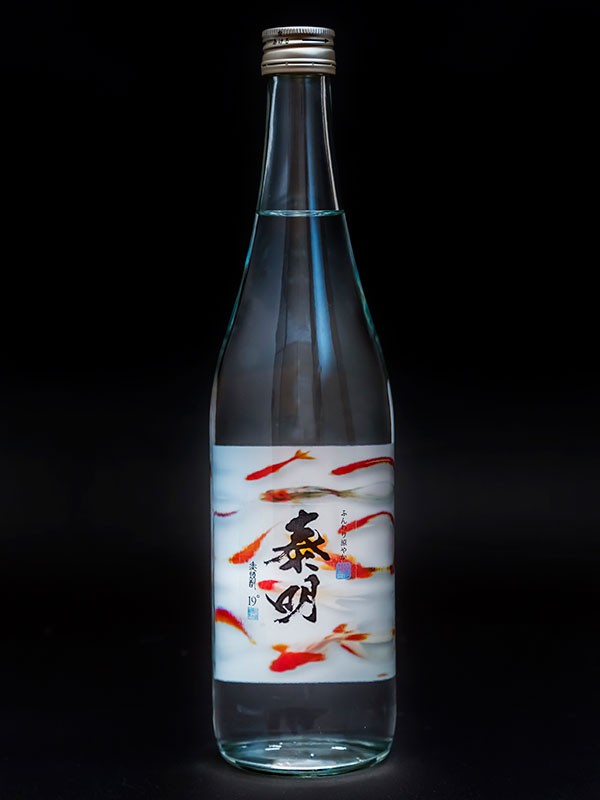 『ふんわり涼やか。特蒸泰明』麦焼酎 19度 大分県 藤居醸造 / 夏の焼酎の先駆けともいわれ、多くのファンをもつ。透明瓶のガラス越しに浮かび上がる金魚が涼しげで夏の焼酎を象徴している。柔らかさと喉越し、すっきりした後味が特徴。冷蔵庫でキンキンに冷やし、氷にそのまま注いで飲むのがオススメ。