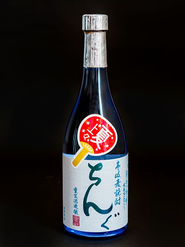 『ちんぐ夏上々』 麦焼酎 19度 長崎県 重家酒造 / 厳選した壱岐産二条大麦「ニシノホシ」と壱岐産米で仕込んだ壱岐焼酎。果実のようなフルーティーで優しい香りで麦焼酎らしからぬ味わい。キラキラ好きの女性を意識し蒼いラメの書体に。そのまま冷やしてワイングラスで楽しんだり、ワイングラスに氷を一つ浮かべ、氷がグラスに戯れる音で涼を感じて呑むのもオススメ。
