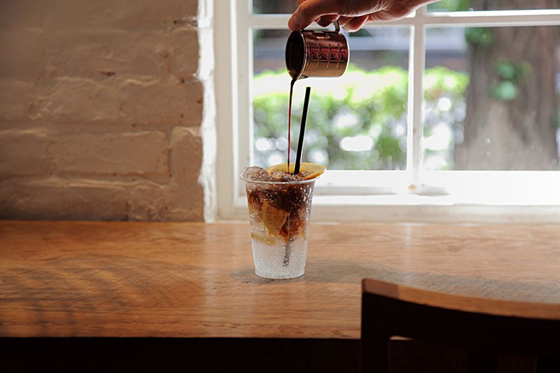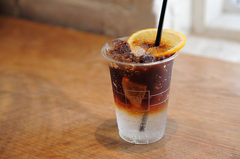 オレンジの爽やかな香りをたっぷり感じる、その味をひと言でいえばまさに“爽やかなコーヒー”。ほのかな甘さは天然のサトウキビを使ったシロップ、炭酸やエスプレッソとなじみやすいように氷もクラッシュアイスにするなど、細かいところにもこだわっています。