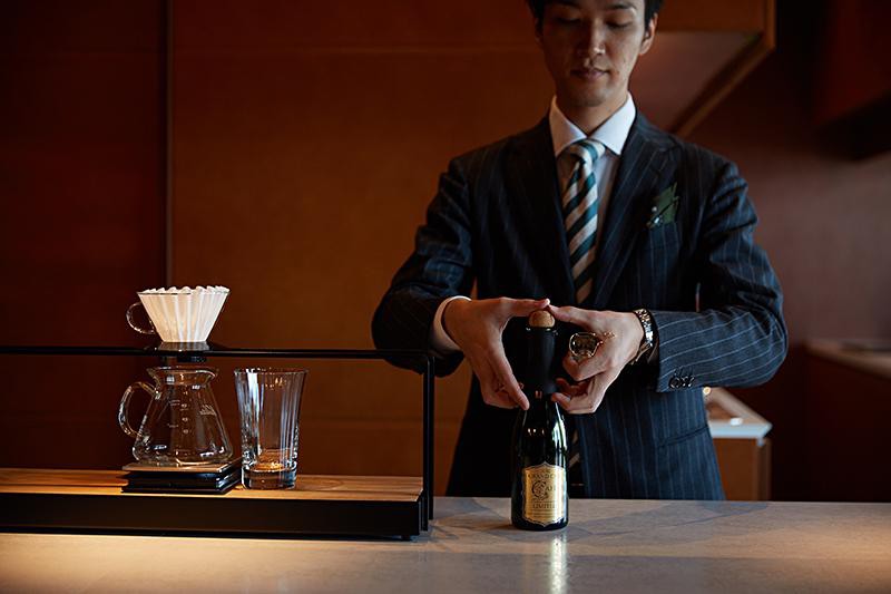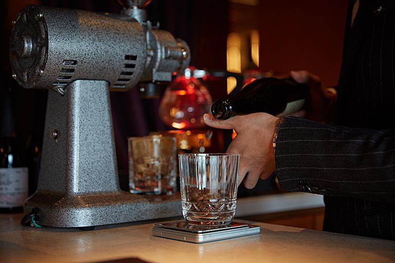 更に、淹れたての華やかなアロマを存分に楽しめるよう、コーヒーが注がれるのもバカラのワイングラスなのです!