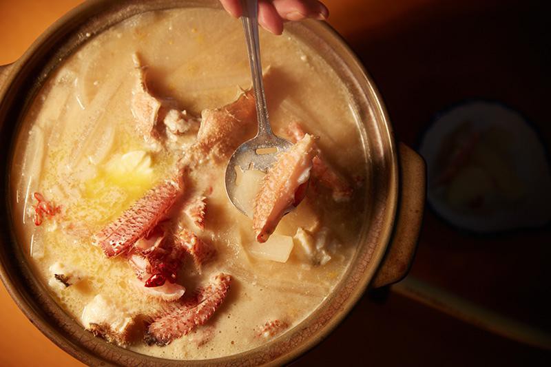 バターと白味噌、そして蟹味噌が溶け出したスープと、ぷりぷり濃厚な蟹身。もはや鍋の主役とも思える、すべての具のうまみを目一杯吸い込んだ大根。これらが珠玉のハーモニーとなり「ああ、幸せ!」と思わず口からあふれてしまう至極の味わい。
