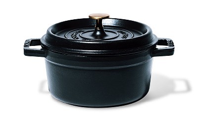 「ストウブ」といえば、食材の旨味を含んだ蒸気が蓋のピコ(突起)によって降り注いで対流する仕組みにファンの多いブランド。美しいラウンドのフォルムなので、そのまま卓上に出しても絵になります。「ピコ・ココット ラウンド 20㎝ ブラック」IH可。内径20×高さ14.5㎝。2万8600円/ストウブ(ツヴィリング J.A. ヘンケルス ジャパン)