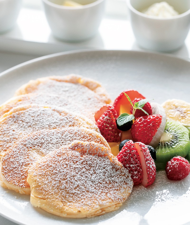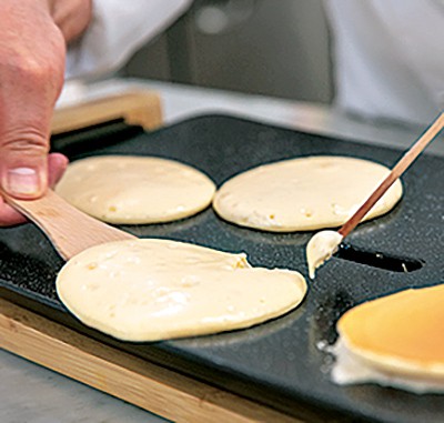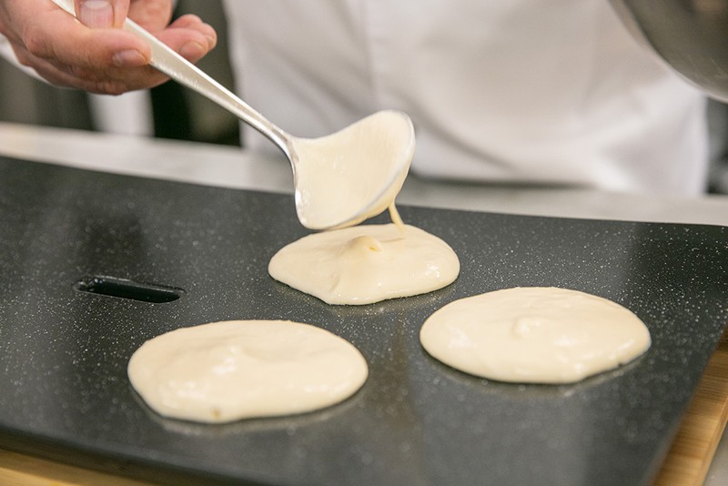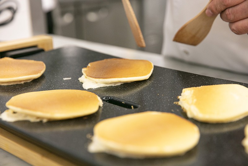 感動的な食感を実現するためにひと手間かけて仕上げられる一流ホテルのパンケーキのレシピをアレンジ。高機能のホットプレートを使い、熱々を召し上がれ。