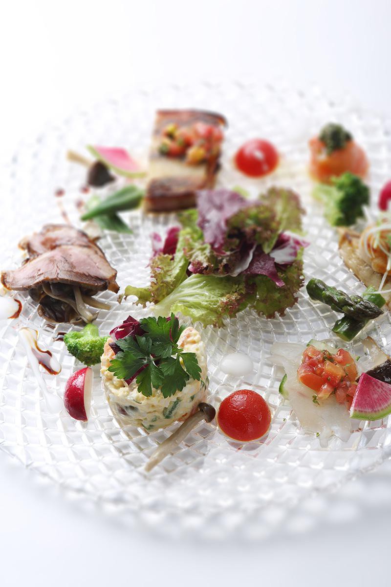 ●ラウンジのフードコンセプトはモダン洋食。ランチはメイン5種から選べるランチセットで1600円~。カフェタイムはオリジナルアフタヌーンティー「AfterMOON Tea」3800円。ディナーはアラカルトで3000円~(税抜き)。