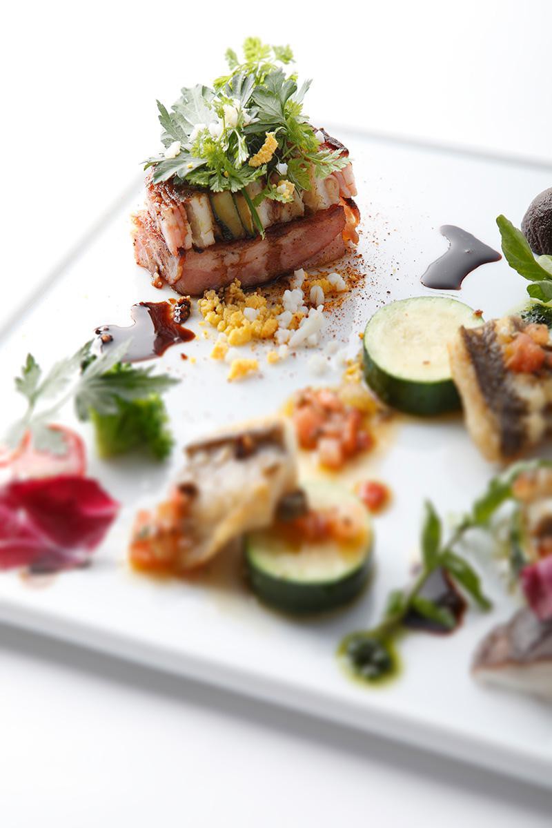 ●ランチ・ディナーともにコース料理のみ。[ランチ]粋コース4950円、雅コース6600円、鉄板コース7700円。[ディナー]粋コース1万3200円、雅コース1万6500円、鉄板コース1万9800円 すべて税別。