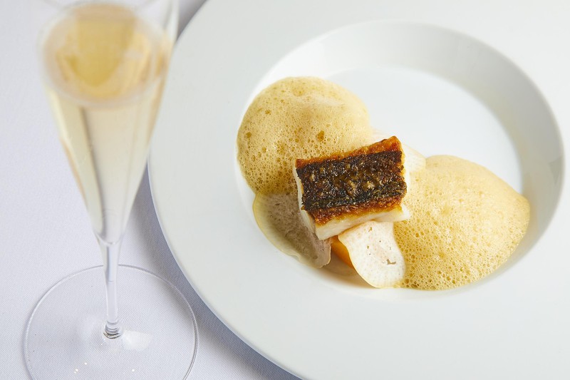 平貝の甘みとキカブのほのかな酸みが脇役に徹することで、主役のヒラメの風味にスポットライトを当てます。ワーテルゾーイのソースにウニを使う贅沢ぶりも圧巻です。
