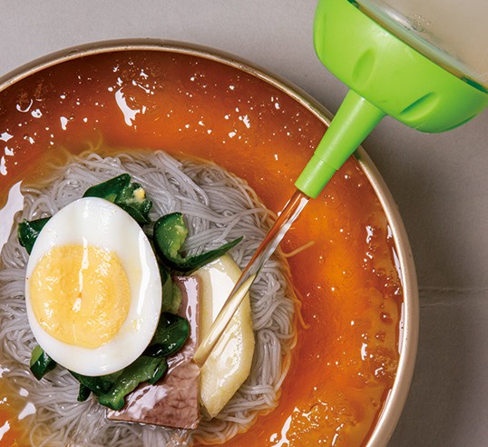 【足し酢】 細麺にプルンプルンの牛出汁スープが絡む冷麺