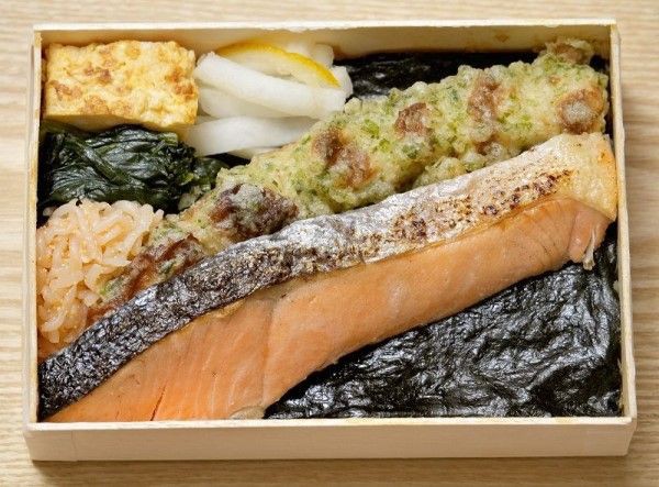 海苔ごはんの上にシャケの塩焼き、ちくわの磯辺揚げなどがのった、イメージどおりの海苔弁そのもの。しかし味わってみると、海苔弁、そして「弁当」そのものの概念が覆ってしまった。その驚きに満ちた味の秘密はどこにあるのか。
