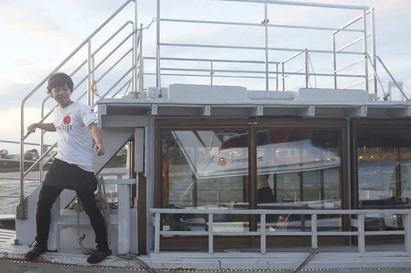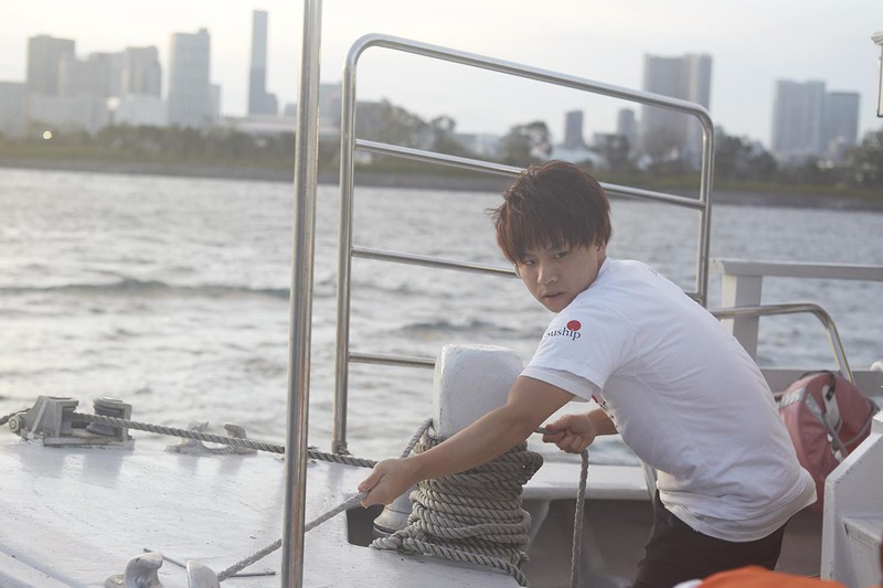 さあ、ようやく「SUSHIP」の全貌が見えました。停泊する場所は時によって変わるそうですが、この日はお台場沖でした。シャトルボートをじりじりと「SUHIP」に近づけ、いざ乗り換えます。船を船上で乗り換えるとはどのようなものか、少々不安でしたが、ここでもスタッフがやさしくサポートしてくれるのでご心配なく。