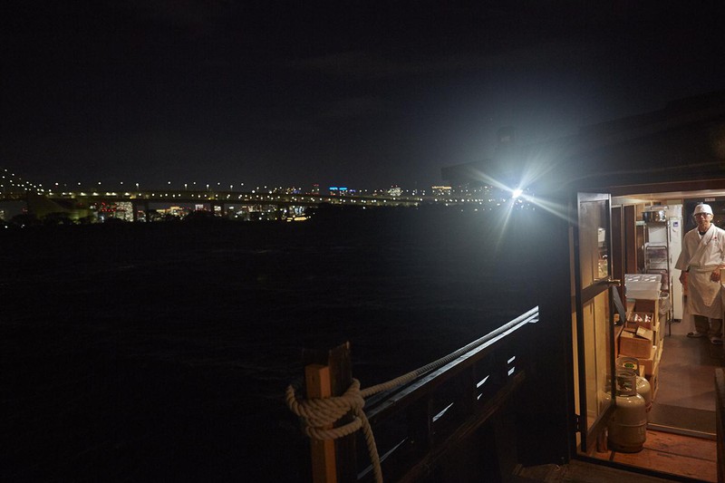 のっけから、路地裏の名店、というより「海上の名店」でした。こちら「SUSHIP」は東京湾上に浮かぶ船上レストラン。いえ、船上というより、船がレストランと言うほうが正しいかな。東京湾でごはん、といえば屋形船を思い出す方も多いでしょうが、この「SUSHIP」が屋形船と異なるのは、この「SUSHIP」自体は動かず、東京湾に停泊している、という点。当然、その船まで泳いでいくわけにはいかないので、なんらかの手段で連れていってもらい、また連れ帰ってもらう必要があります。ここが今回のキモ。