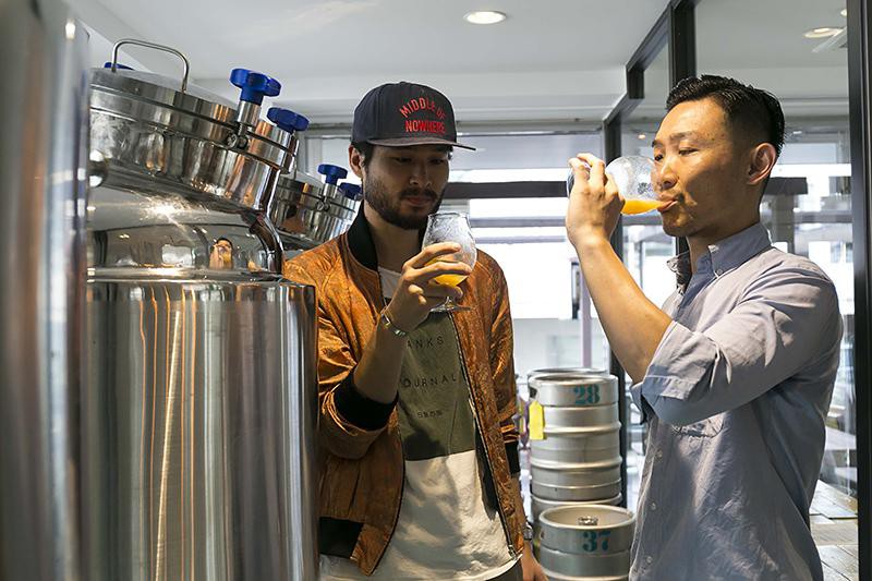 ブリュワーの榊弘太さん(左)と小野寺洋一さん(右)。「造られた場所で飲むビールが一番おいしい」。