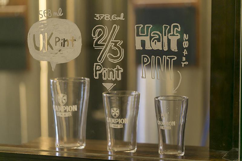 UKパイントグラスの他に、2/3パイント、ハーフパイントのグラスも用意。UKパイントグラスは大きすぎる、という女性にはうれしい配慮!
