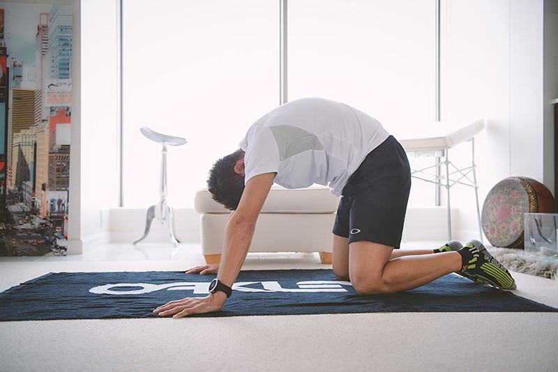 この最後の有酸素運動についてはジョギングや縄跳びなど各人でお願いすることにし、ここでは自宅でできるストレッチとスイッチ エクササイズをご指南。コーチとしてプロのアスリートも指導する青山 剛さんに教えていただきます。