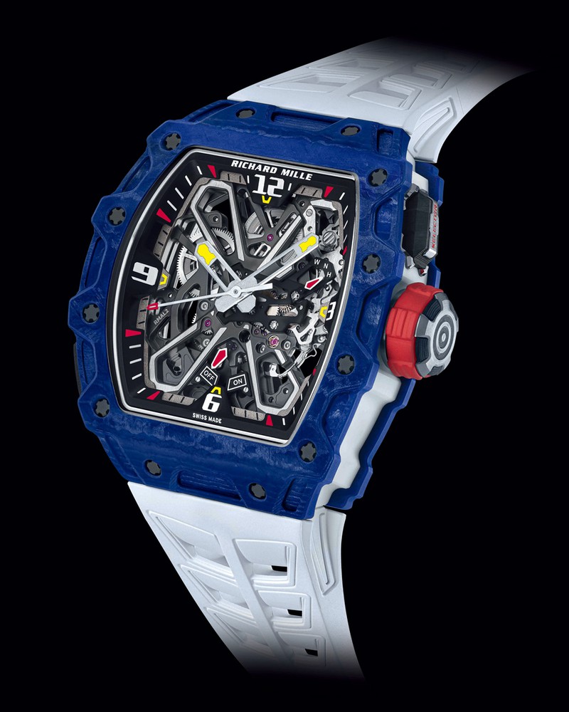 ▲ 「RM 35-03 オートマティック ラファエル・ナダル」自動巻き、カーボンTPT®+ホワイトクオーツTPT®ケース(43.15×49.95mm)、ラバーストラップ。参考価格2750万円/リシャール・ミル(リシャールミルジャパン)
