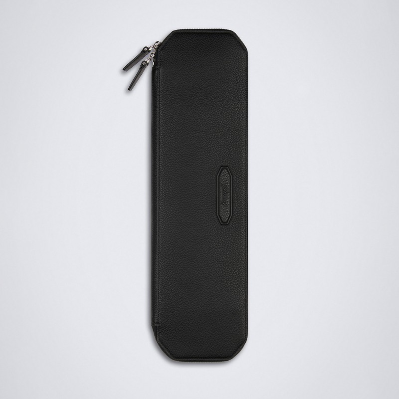 ▲ 旅先でネクタイにシワが寄るのを防ぐレザー製のネクタイケース。ブランドを象徴する八角形のシェイプにダブルジップ クロージャーを備え、中で動かないようにするキーパーつき。19万6900円/ブリオーニ(ブリオーニ クライアントサービス)