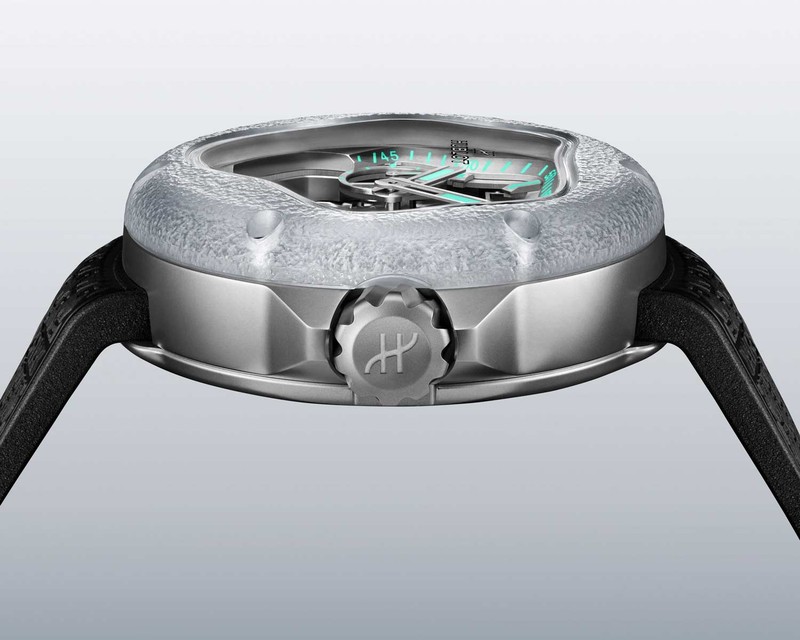 ▲ 「MP-17 メカ-10 アーシャム スプラッシュ チタニウム サファイア」手巻き、Ti×サファイアクリスタルケース(42mm)、ラバーストラップ。世界限定99本(日本国内は直営ブティック限定、伊勢丹新宿先行発売)。904万2000円/ウブロ