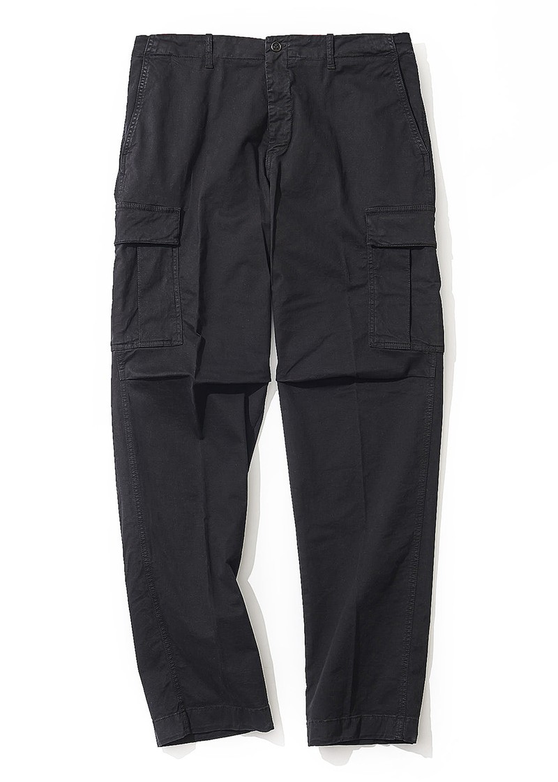 さらに、昨今はシルエットに工夫を加えた軍パンもさまざま登場しています。特に注目度が高いのが、まんまミリタリーな極太でもなければ、ひと昔前のピッタピタのスキニーでもなく、太ももあたりがちょっぴりゆるくて、膝下がシュッとテーパードしたモデル。それならリラックス感と美脚を両立できるんです。