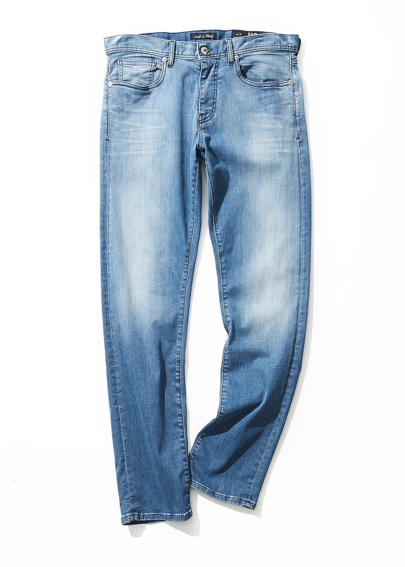 そこで重宝すのが、カジュアルでもスポーティ一辺倒にならず、男っぽくまとまるアイテム、そうデニムパンツです。ヘヴィウェイトでオーセンティックな仕様の骨太デニムも捨てがたいのですが、汗ばむこの時期はさすがにちと辛いですから、快適なはき味の一本をセレクトしましょう。