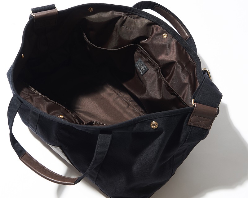 こちらは、ボディにコットンのような質感のオリジナルのナイロン素材を、ハンドルと底部には肉厚で柔らかな牛革を採用しているのが大きな特徴。これまでのコットンキャンバス素材のトートよりも軽量でありながら、さらにタフというのがポイントです。また、艶やかで滑らかなレザーの切り替えが、武骨な印象になりがちなトートに上品さを加えている点も見逃せません。