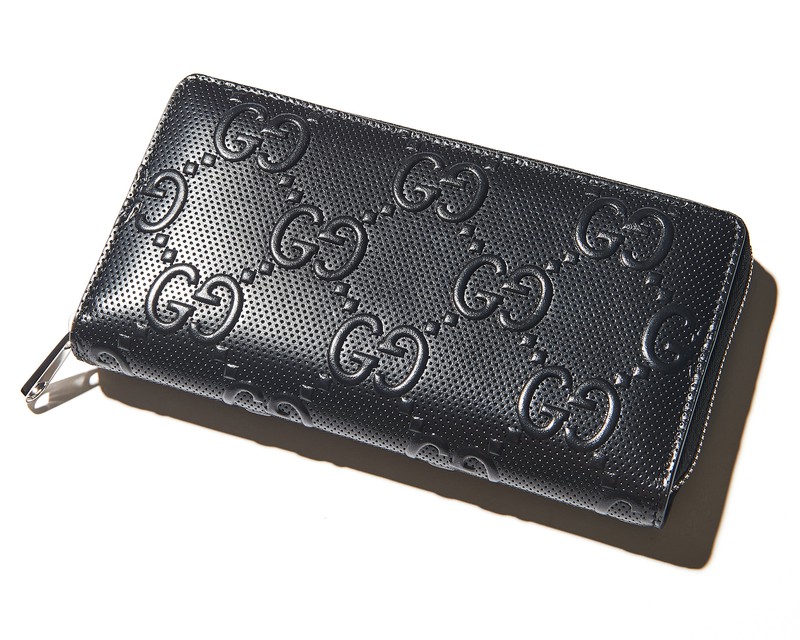 アイコニックなGGパターンを、パンチングレザーに配したジップアラウンドウォレット。立体感のあるエンボス加工が、視覚と触感を心地よく刺激してくれます。艶かしい質感が、どこか懐かしくて新しい。そんなところも、ミケーレのクリエイションのなせる技。シーンや着こなしを選ばず使える、大人の艶黒なんです。