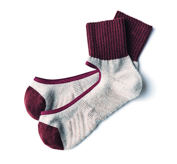 ヨガや軽いトレーニング時にぴったりの女性用ソックス(こちらもカシミア♥)。甲部の 空きとアンクルホールドの形状が、使えてお洒落。ちょいプレに最適! 1万7000円/ロロ・ピアーナ(ロロ・ピアーナ ジャパン)