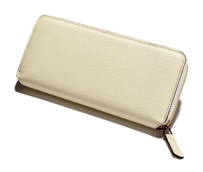 ゴートレザーは、繊維が細かいので軽く、同時に耐久性に優れているのも魅力。傷がつきにくいというのも、縁起を担いで白財布を購入する上ではポイント高しです。