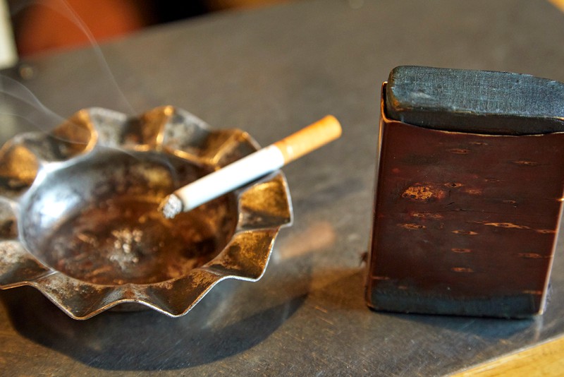 ▲ 牧野さんの煙草の吸い方は実にスマート。酒の合間にサッと吸ってスッと消す。