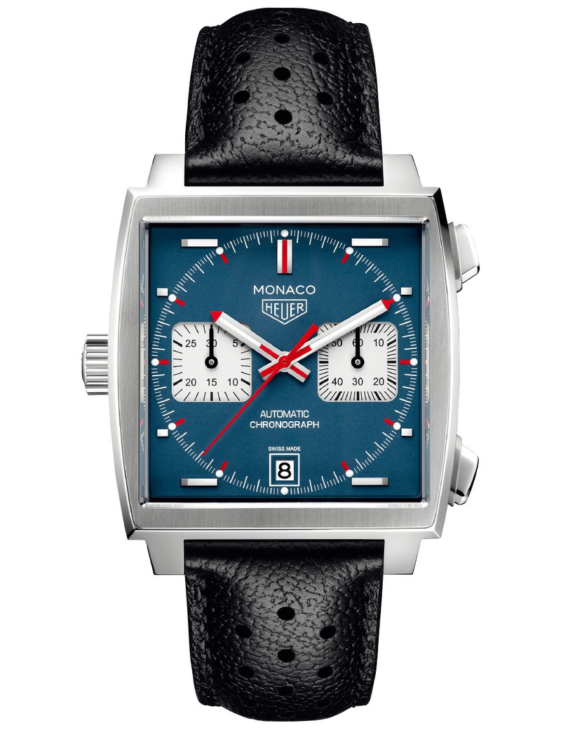 [ホイヤー モナコ キャリバー11クロノグラフ] 自動巻き、SSケース(39㎜)×ブラックカーフブレスレット。 63万円/タグ・ホイヤー