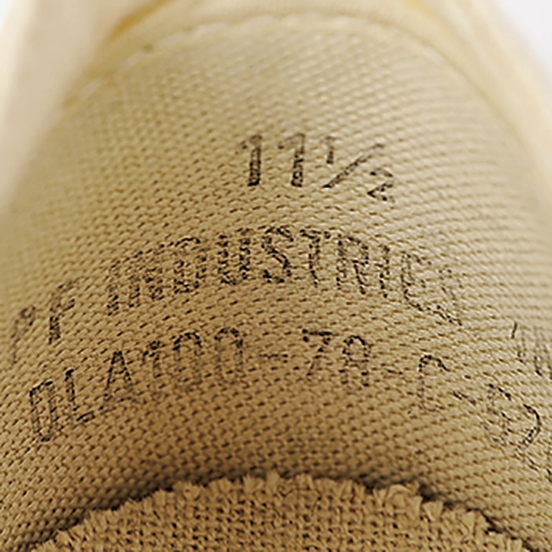 唯一かかとの内側にサイズとメーカー名が軍の規格番号(ミルスペック)とともにスタンプされているのだが、あれ? この個体、メーカー名がCONVERSEではなくP.F.INDUSTRIES.INCと入っているではないか!