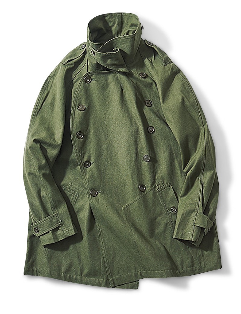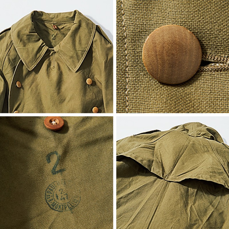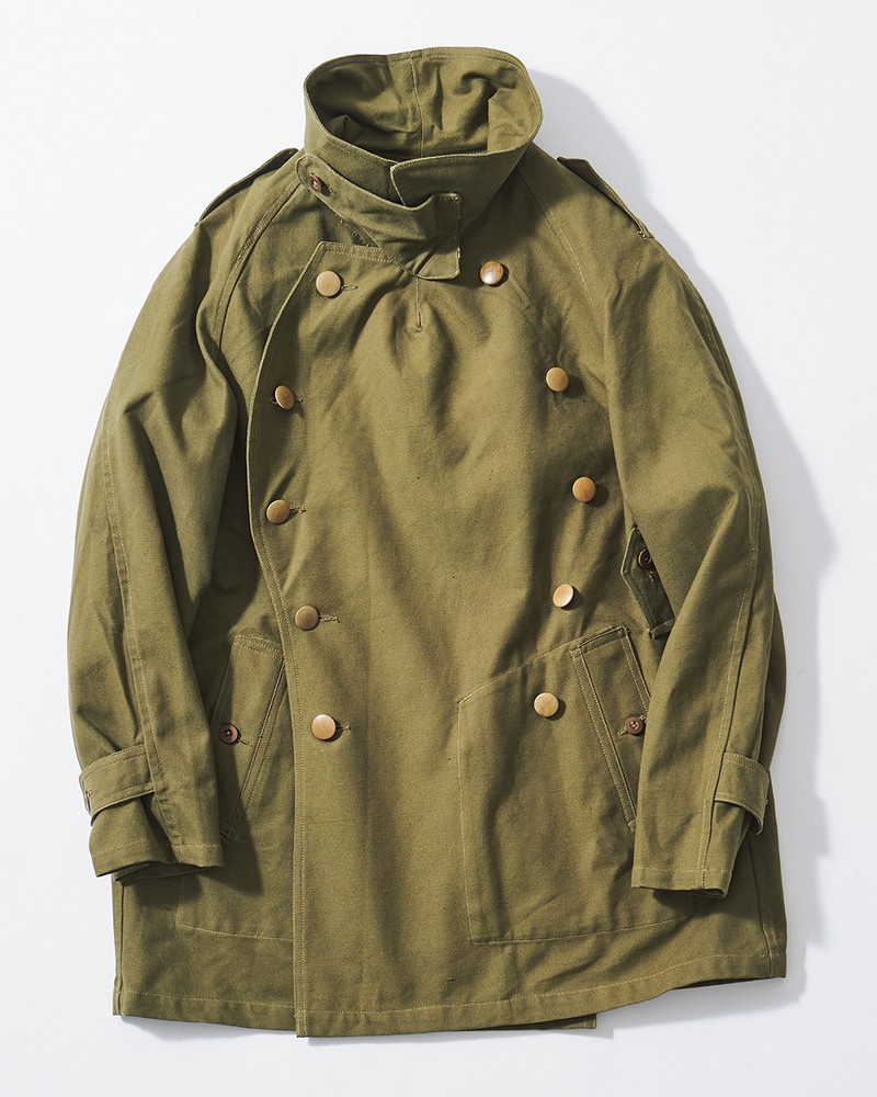 今から30年くらい前に初めて仕事でパリを訪れた時、クリニャンクールの蚤の市に出店していたミリタリー専門の古着屋で初めて見かけた瞬間、咄嗟にそう呟いてしまった。丸みを帯びたダブル合わせの前立てのラインに沿うように配されたボタンをしげしげと見つめる私に、その店のベレー帽がよく似合う咥えタバコのムッシューは「これは古いフランス軍のバイク部隊用のオーバーコートだ」とフランス語訛りの英語で教えてくれた。