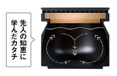 竃が熱源であった江戸時代中期に使われていた“いも型形状”を忠実に再現。均一な対流を生むため、出汁と食材が見事にマリアージュする、と。それをカーボン・グラファイトでやってのけたわけで……拍手モノ!