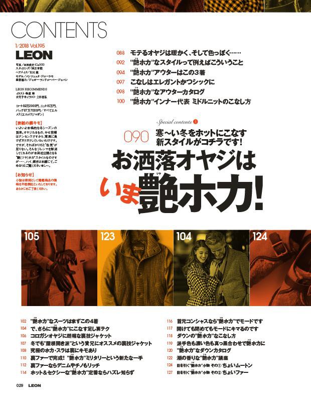 そこで今回LEONでは、これまでなんとなく遠い場所にあるように思われてきた"暖かさ"と"色っぽさ"の両立に真正面から向き合い、ヤセ我慢はゼロにしてオヤジらしい色気を発揮できるお洒落を追求したいと思う次第。
