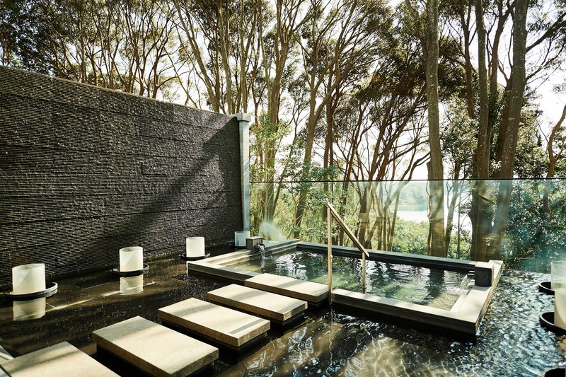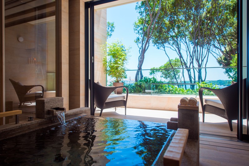 ▲ JOHN KANAYA Suite(ジョン カナヤ スイート)のプライベート温泉。テラスの一画に位置した、セミオープンエア。