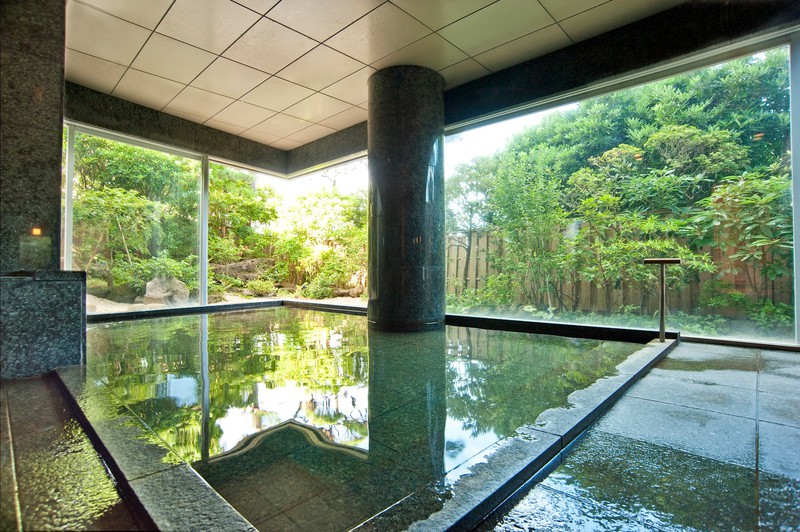 で、お待たせしました、肝心の温泉。温泉の大浴場は1組ごとに時間制の貸し切りスタイル。窓を開放することができ、日本庭園を眺めながら半露天気分が味わえます(海は見えませんが)。水風呂やサウナも併設。“美肌の湯”と呼ばれる熱海温泉ゆえ、彼女も喜びそう。