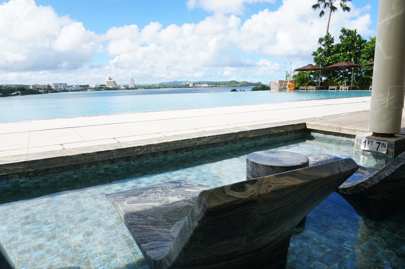 ▲ インフィニティプールと、プールサイドにはウォーターチェアつきのプールバー。インフィニティプールは8時オープン(2023年1月~)なので、日本時間は朝7時。仕事に入る前にさくっと朝活も!