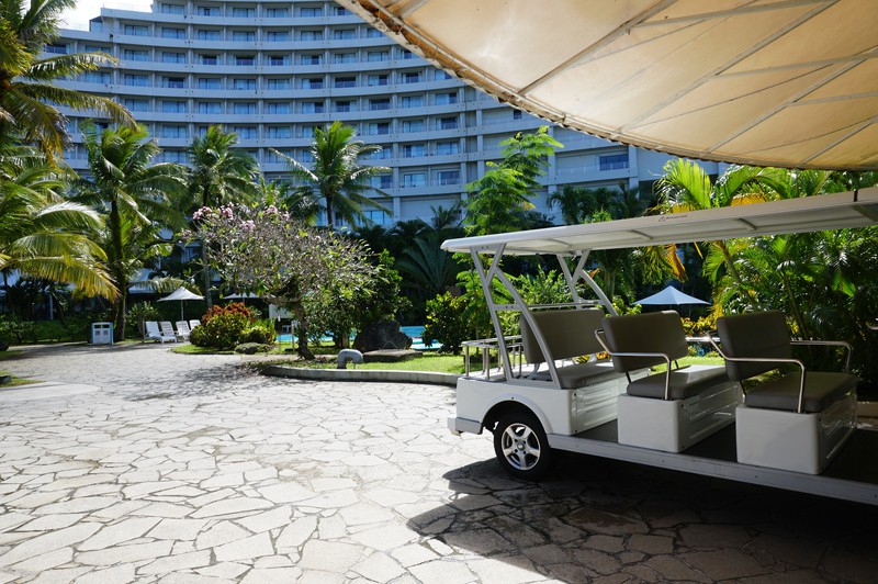 ▲ ガンビーチへは歩いても10分程度で行けるが、ザ ツバキ タワーの正面玄関から30分おきに無料シャトル送迎もしている。帰りも時間をチェックしておけば、ランチタイムの短い時間を有効に使える。