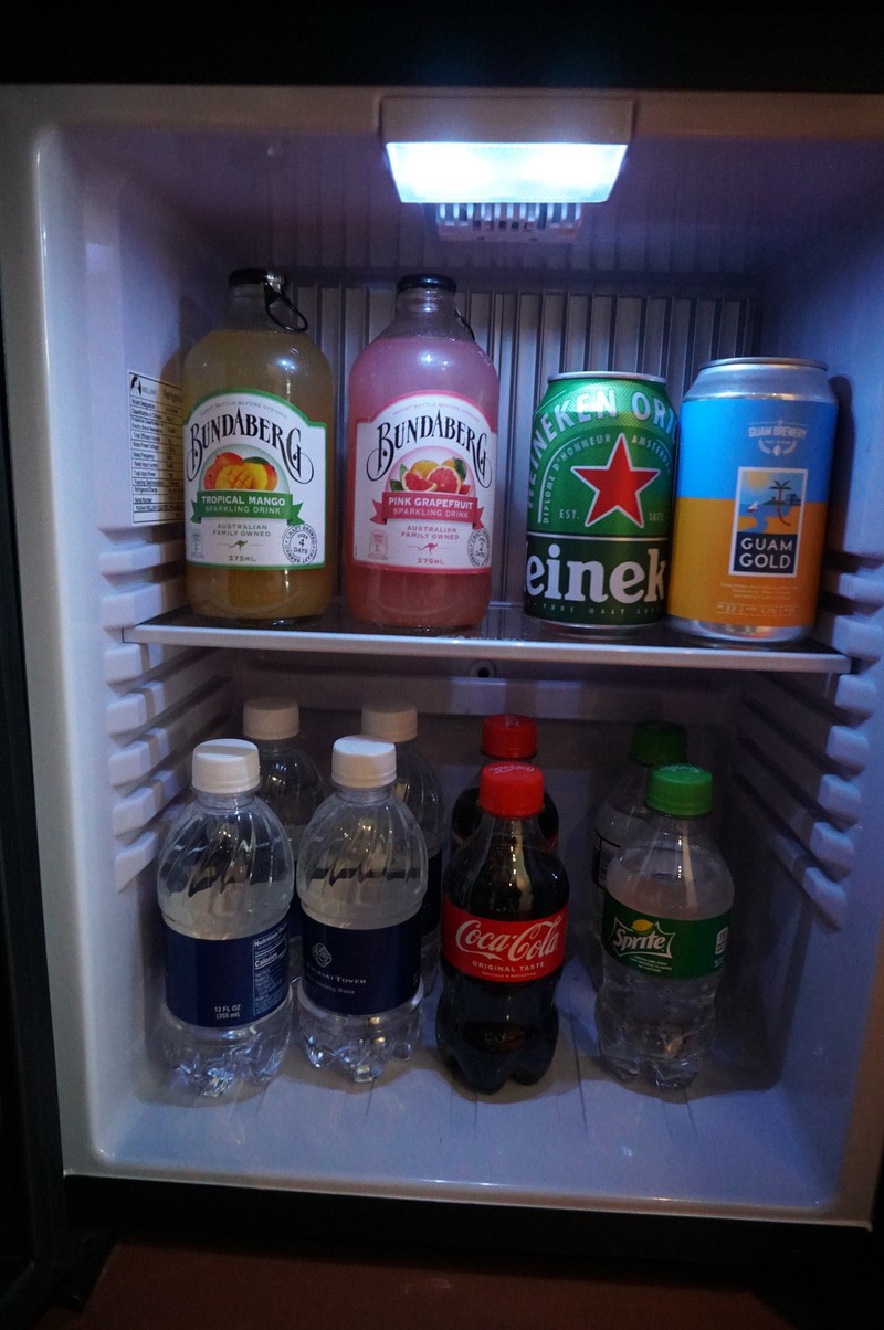 ▲ あら。ビールまで2種類入っている。1滞在につき1回のサービスだが、水は無料でリフィルしてくれる。