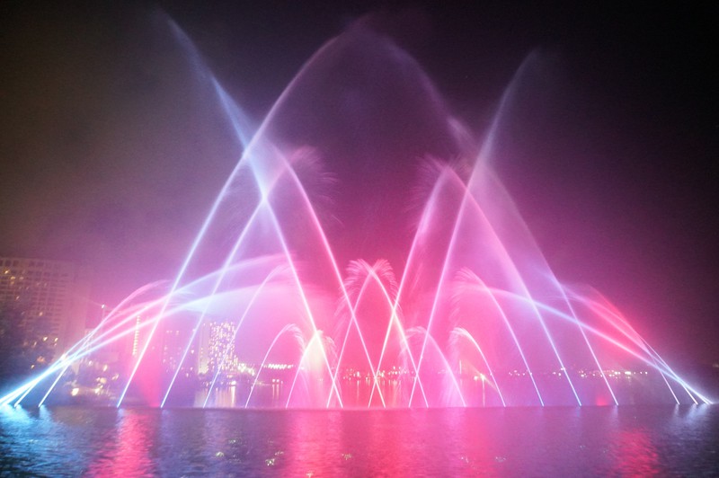 ▲ インフィニティプールでのファウンテンショーは毎日19時から23時の時間帯に3回の開催。ナイトプールにつかりながら、あるいはプールバーの特等席から楽しめる。
