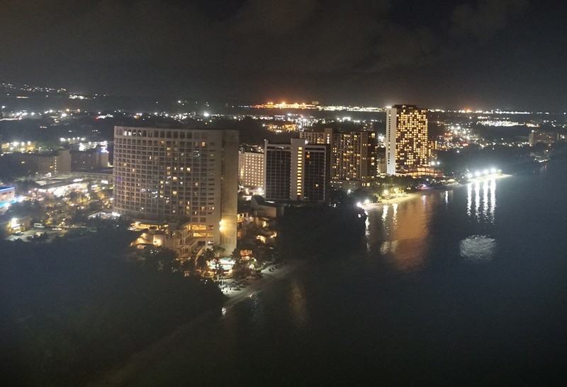 ▲ タモン地区の北端という位置ゆえ、夜には真っ黒な海だけでなくタモン地区の夜景も見られる。客室バルコニーでのイブニングバルコニーサービス(提供開始準備中)やルームサービスを利用してサンセットと夜景をのんびり楽しむのもおすすめ。