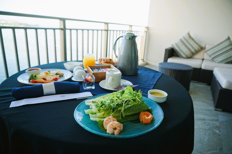 ▲ アウトサイドリビングでの朝食(US40$、税込・サ別)は、ふたりだけで過ごしたい時に。チャモロ料理やシーフードなどグアムらしさあふれる4種類から選べるから、滞在中いろいろ試してみるのもよさそう。